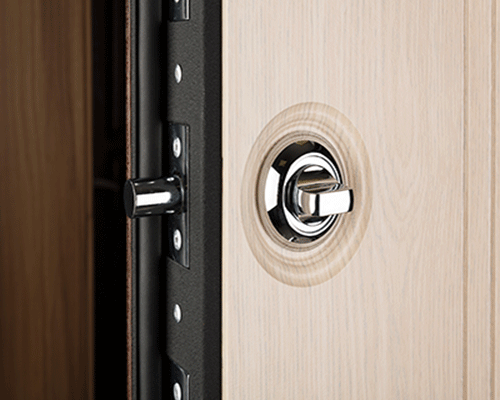 Установлены: цилиндровый замок "STADT", сувальдный замок "STADT", ночная задвижка, броненакладка, эксцентрик, ручки и глазок.