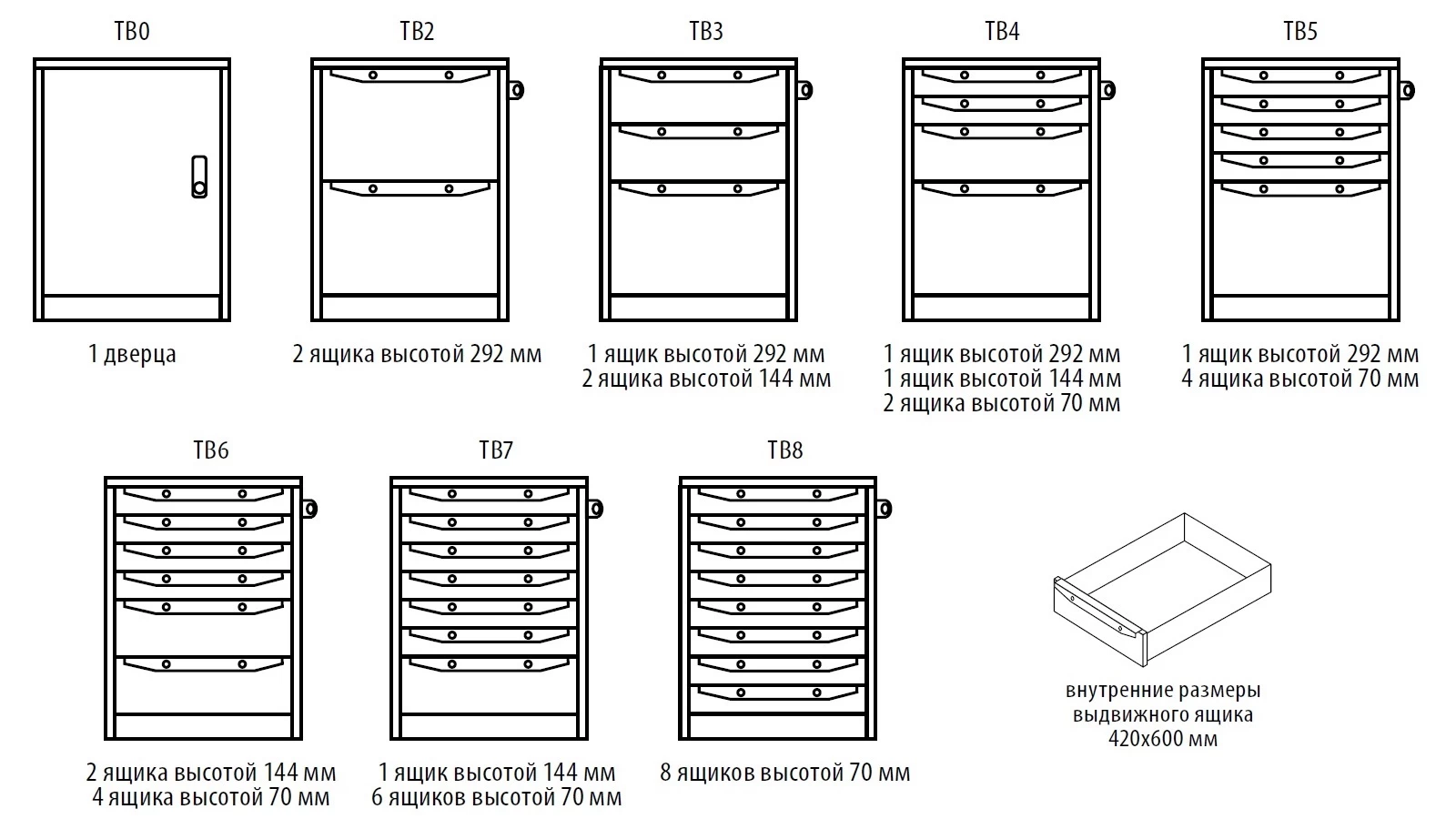 В состав верстака ТBP 1500 ТB3-ТB8 входит: